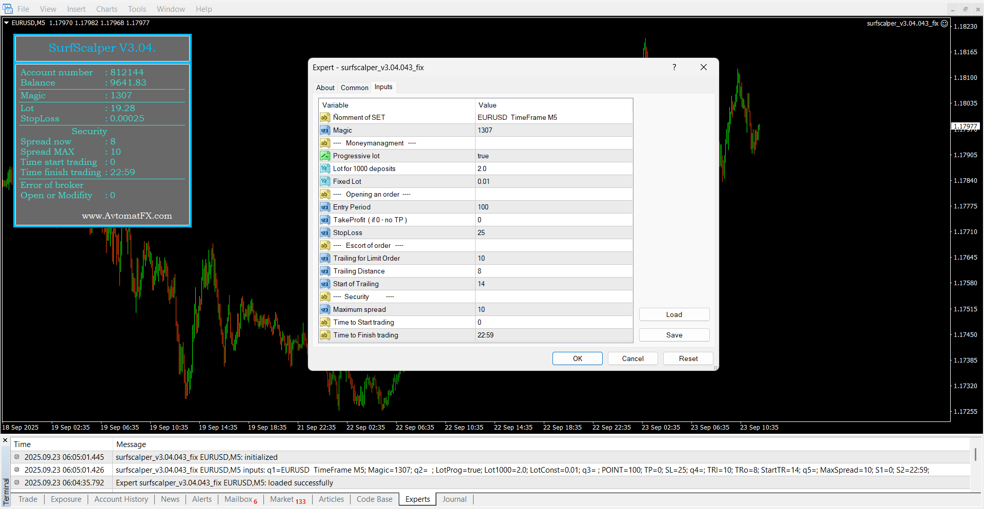 SurfScalper is a high-frequency scalper designed for advanced traders with experience in high-frequency scalping. It works best with brokers offering tight spreads and low commissions, especially those that meet specific conditions for profitable trading. The robot is optimized for accounts where the total spread plus commission doesn’t exceed 3 pips (on a five-digit broker system).
