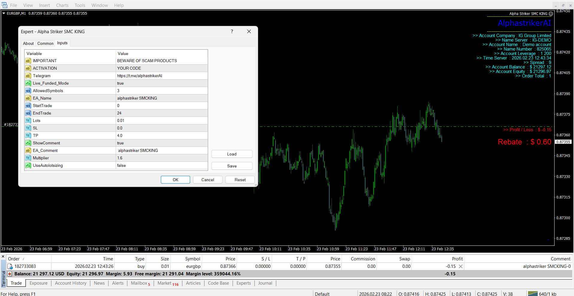With 5 years of experience in the market, ALPHA STRIKER EA has been tested and refined to adapt to various market conditions. This experience ensures a higher level of reliability in its trading strategy.