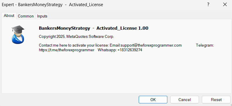 Content: Expert: BankersMoneyStrategy – Activated_License.ex4 (Unlocked-Unlimited), Presets: BreakoutStrategy_LessTrade.set, BreakoutStrategy_MoreTrade.set, HedgingStrategy_LessTrade.set, HedgingStrategy_MoreTrade.set, UserGuides: Bankers Money Strategy.pdf, How To Get Forex Trading Alerts On Your Mobile Phone And Help Other Traders Make Money Too.pdf.