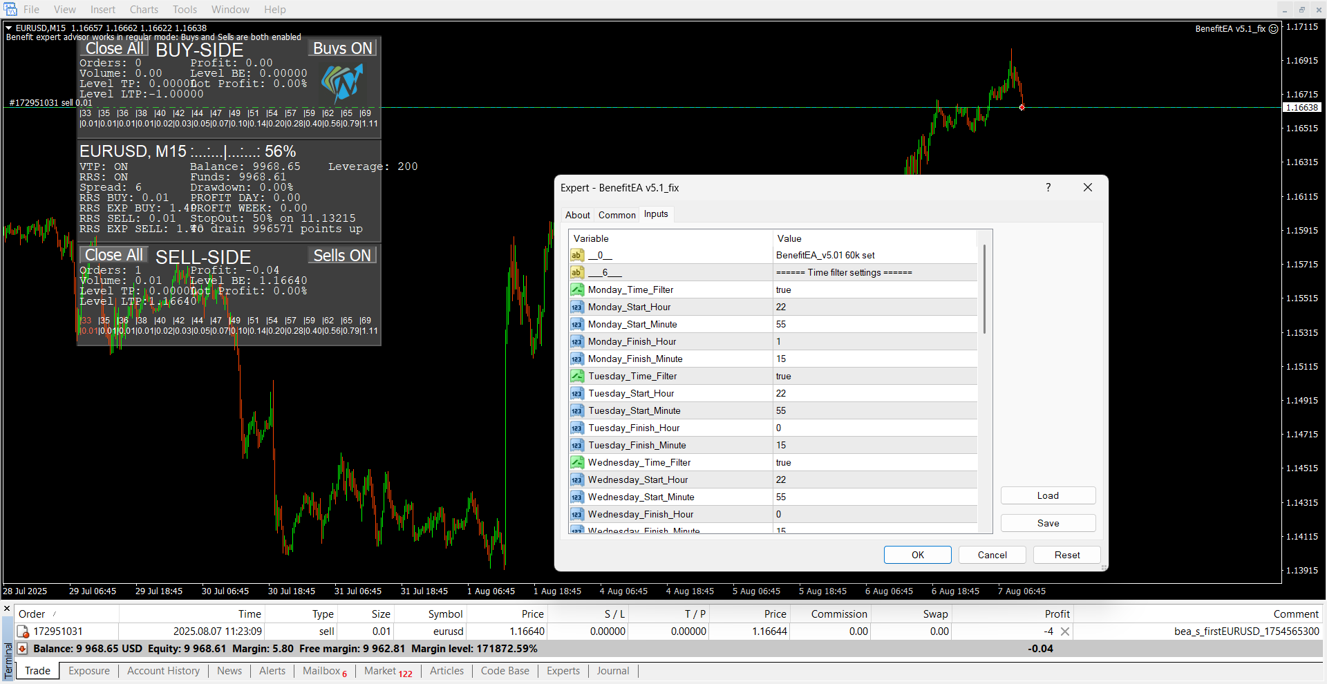 The Time Filter has been completely reworked. It now aligns with your terminal’s internal chart time—not your PC’s system time. This upgrade enables fully automated, time-based trading without manual intervention. Status is now displayed clearly in the upper-left corner of your trading chart. -