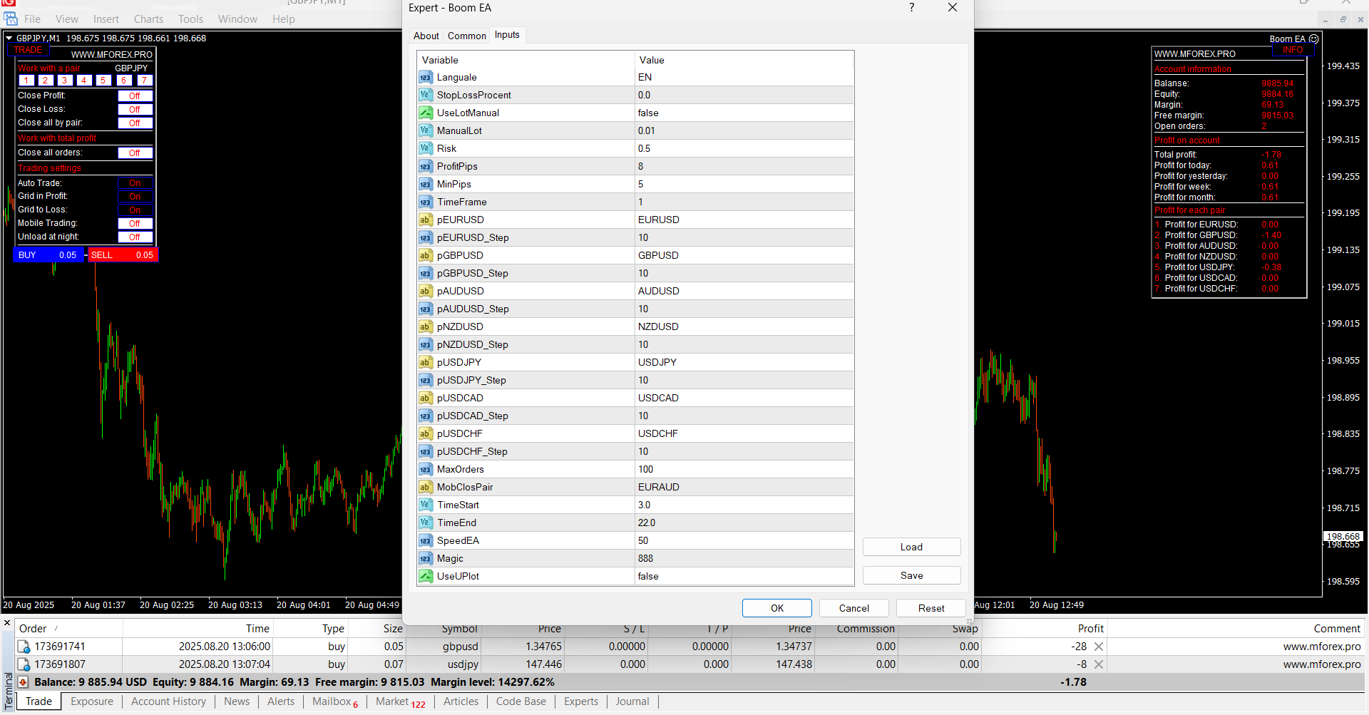 Content: Expert: Boom EA.ex4 v1.0 (Unlocked-Unlimited), Preset: BOOM.set, NO MANUAL.
