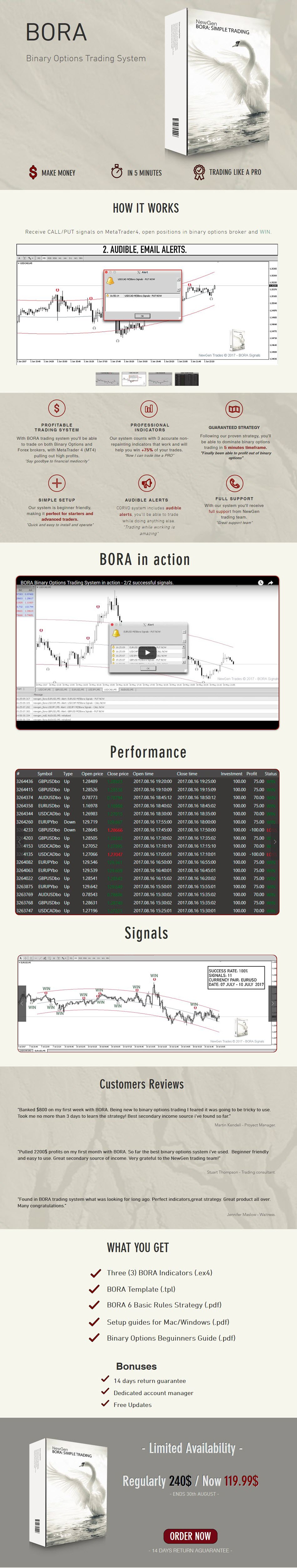 Content: Indicators: newgen_Bora.ex4, newgen_indi2.ex4, indi3.ex4 (Unlocked-Unlimited), Template: bora.tpl, UserGuides: Binary Options Beginners Guide.pdf, BORA SETUP – WINDOWS.pdf, BORA – Strategy.pdf.