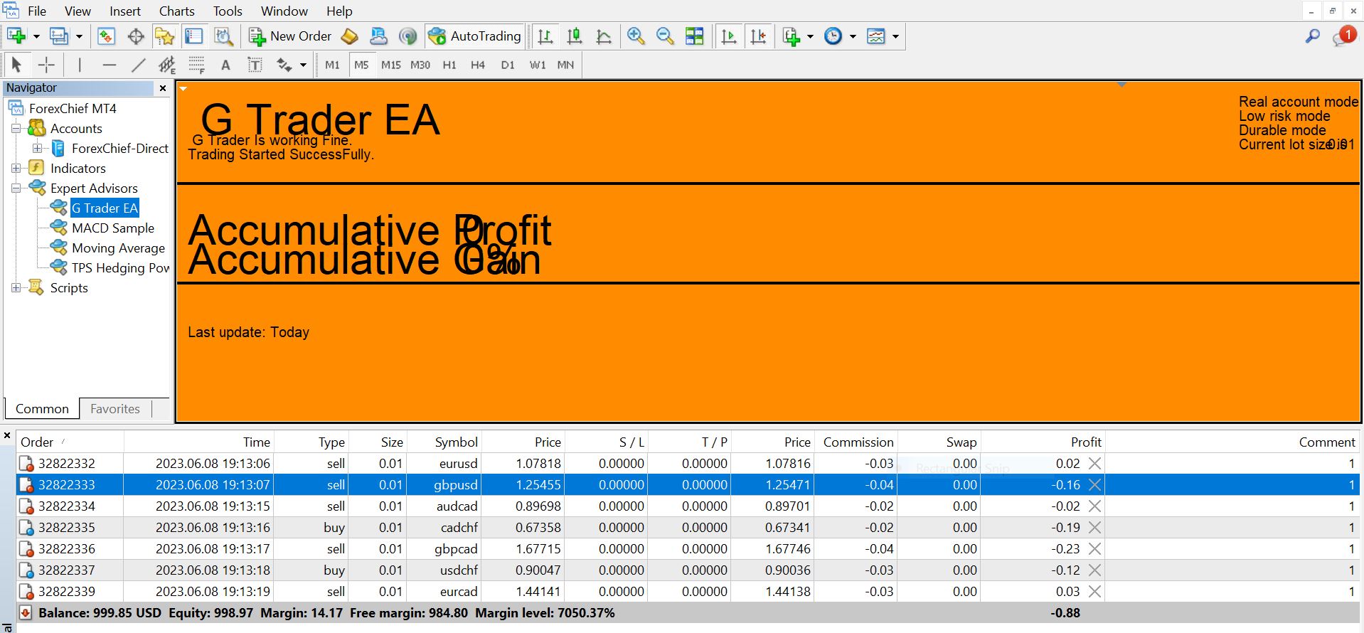 Content: Expert: G Trader EA.ex4 (Unlocked-Unlimited), Preset: G trader H1 – low risk.set, NO MANUAL.