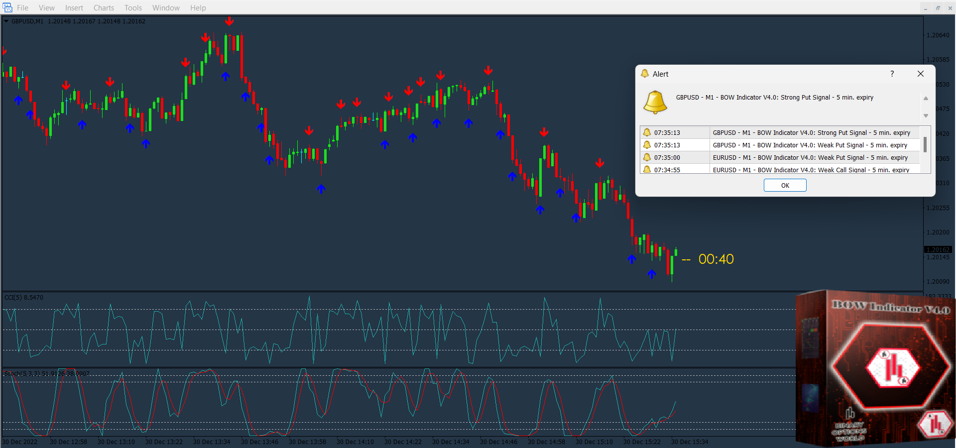 Content: Indicators: BOW Indicator v4.0.ex4, CandleTimer.ex4 (Unlocked-Unlimited), Templates: Bow indicator_1.tpl, Bow indicator_2.tpl, UserGuides: BOW Indicator V4.0 – Installation Guide.pdf, BOW Indicator V4.0 – Trading guide.pdf.