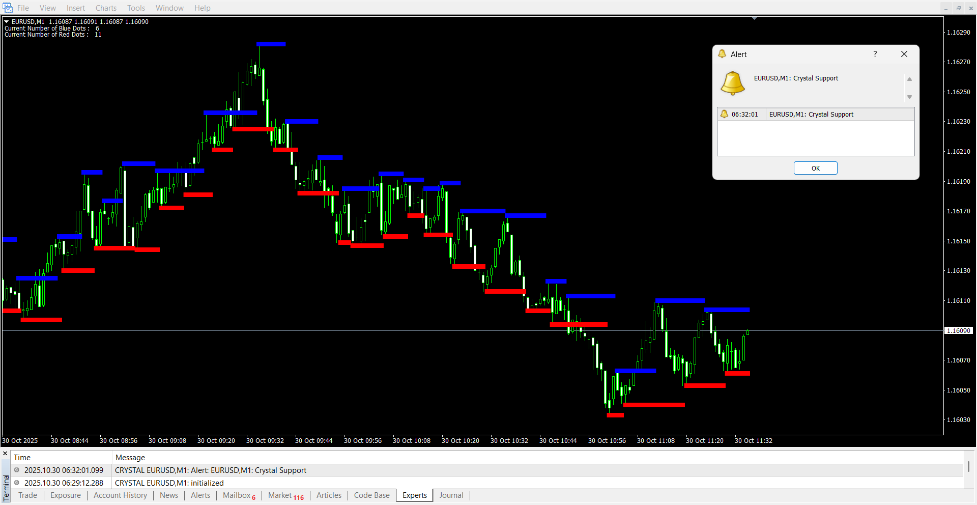 The indicator primarily calculates signals based on 1-minute intervals, a challenging timeframe that CRYSTAL has mastered.