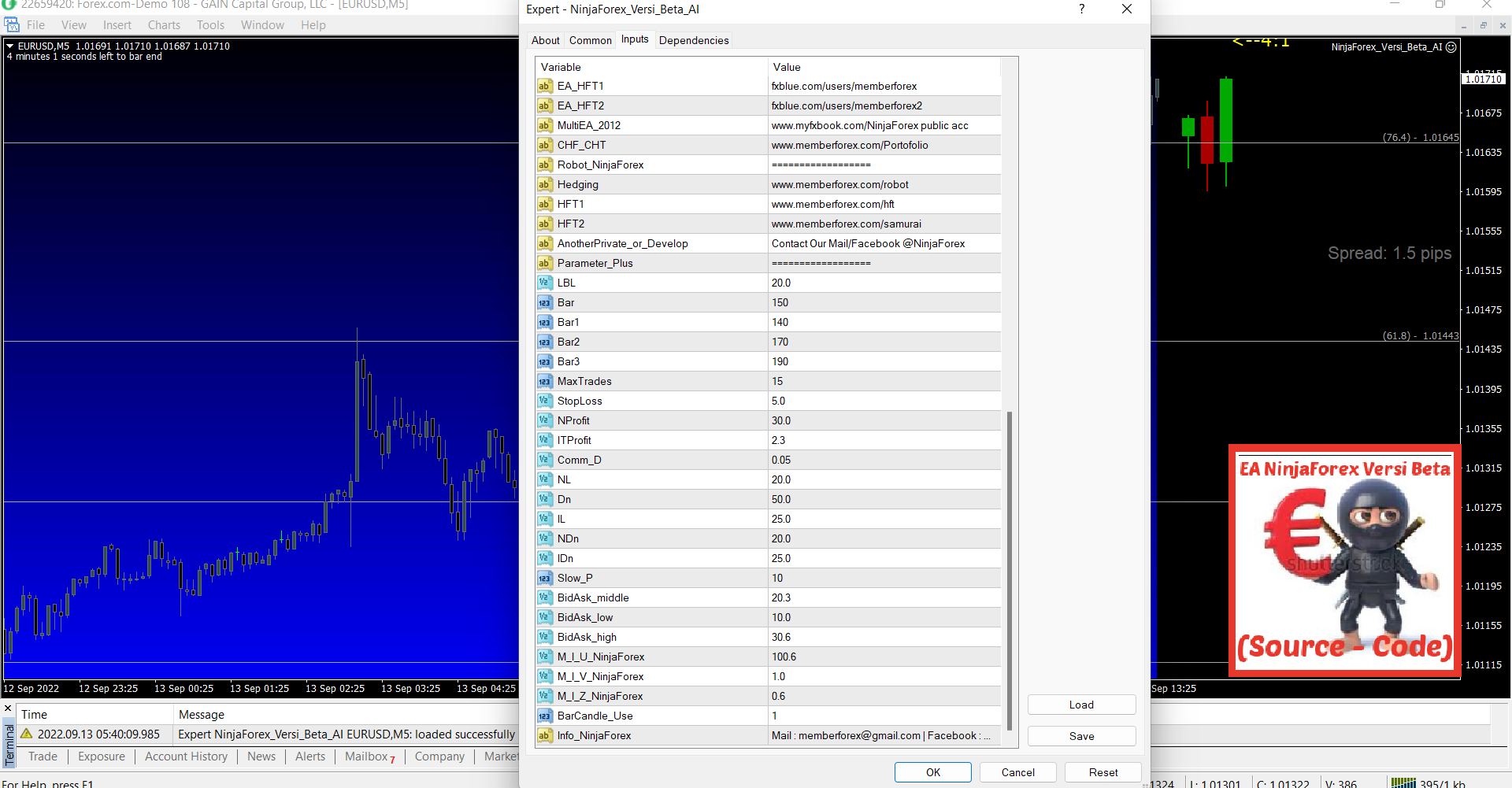 Content: Expert: NinjaForex_Versi_Beta_AI.ex4, NinjaForex_Versi_Beta_AI.mq4 (Unlocked-Source Code), Document: Pair & Time frame, NO MANUAL.