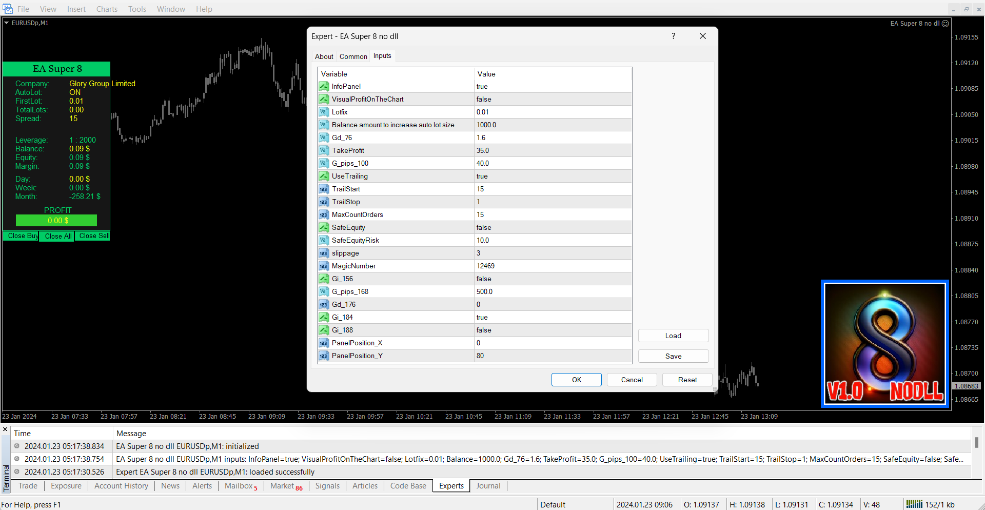 Content: Expert: EA Super 8 no dll.ex4 (Unlocked-Unlimited), NO MANUAL.
