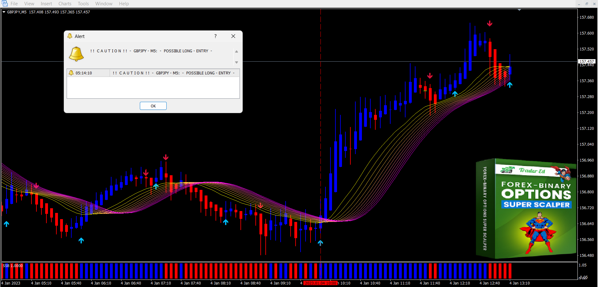 Content: Indicators: ##SSrainbow.ex4, ##SSHA.ex4, ##SSalert.ex4, ##SS8.ex4, ##SS_MarketOpenings.ex4 (Unlocked-Unlimited), Template: !!!_ForexSuperScalper.tpl, UserGuide: S.S. UserGuide.pdf.