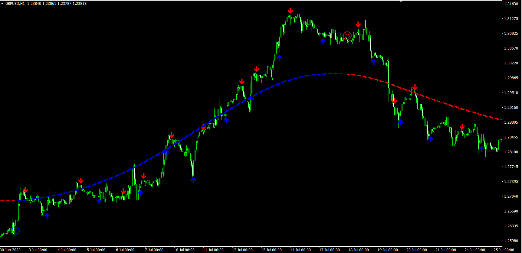 The indicator is very easy to use as it does not require dealing with any hard to understand settings at all. You just need to attach it to your chart and you’re ready to trade. No matter what trading style you prefer, the system will help you see the direction of the market and possible entry points in the direction of the trend.