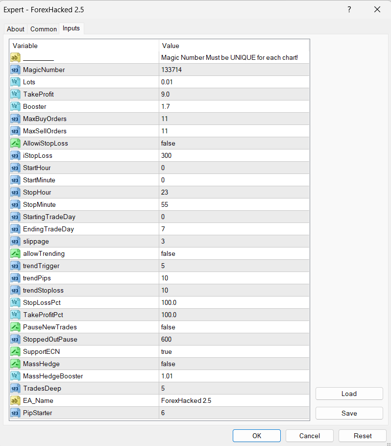 High Trade Frequency: Unlike other EAs that trade once or twice a day, Forex Hacked 2.5 trades often, balancing frequency with profitability.