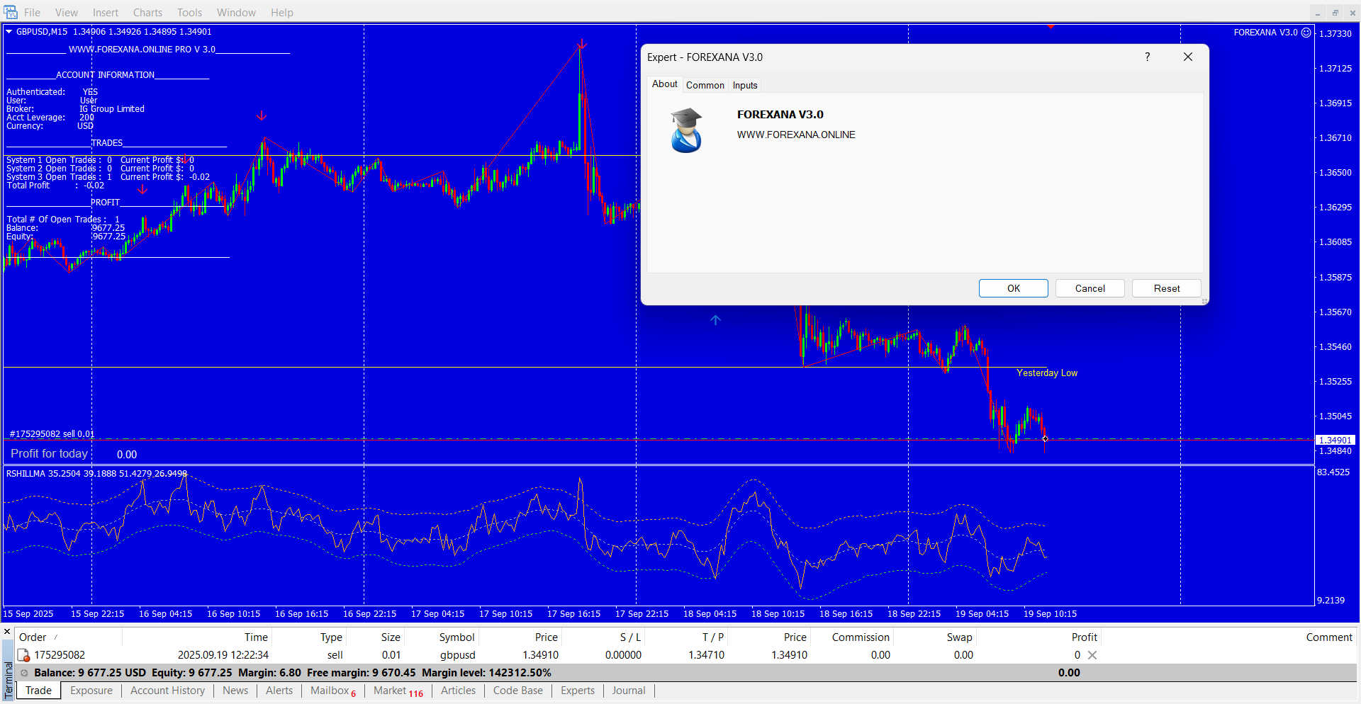 Content: Expert: FOREXANA V3.0.ex4 (Unlocked-Unlimited), Indicators: ZigZag.ex4, Yesterday High & Low v2.0.ex4, RSHILLMA.ex4, Preset: GBPUSD.set, Template: FOREXANA TEMPLATE.tpl, Document: forexana read me first.txt.