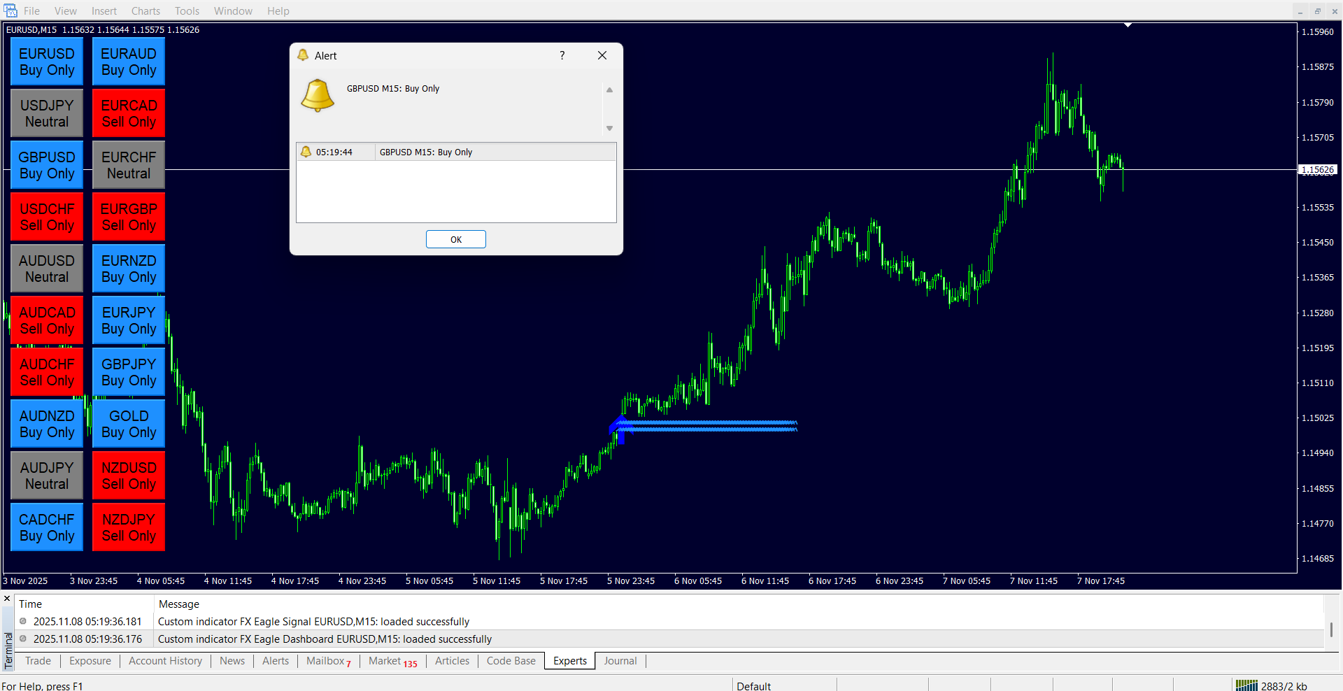 Content: Indicators: FX Eagle Dashboard.ex4, FX Eagle Signal.ex4 (Unlocked-Unlimited), Template: FX Eagle.tpl, 8 InstructionaljPegs, NO MANUAL.