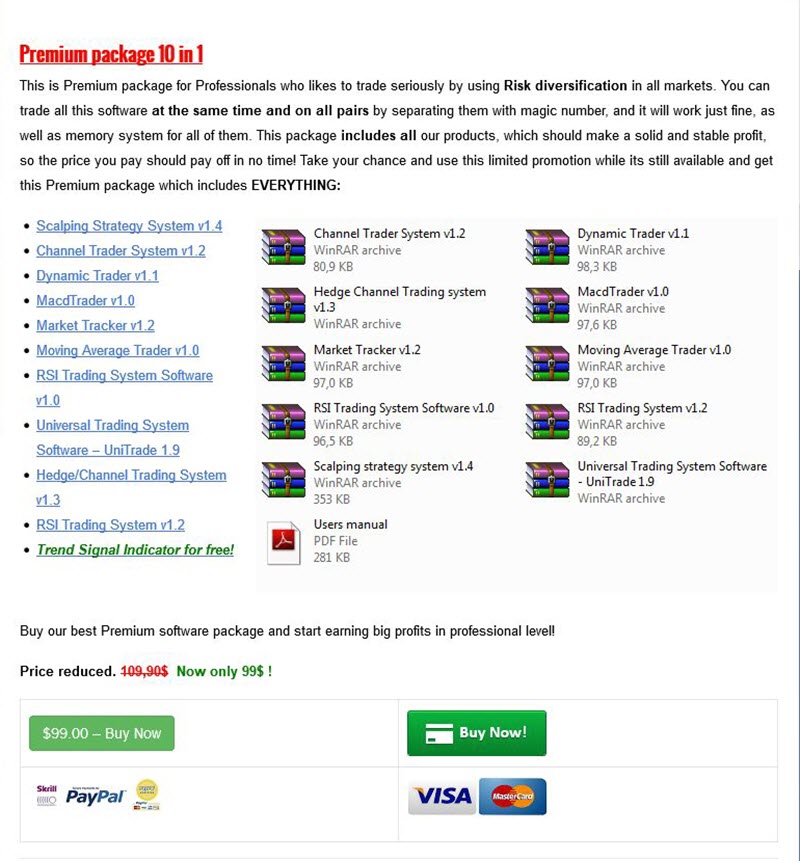 Content: Experts: Scalping Strategy System v1.4.ex4, Channel Trader System v1.2.ex4, Dynamic Trader forex robot v1.1.ex4, MacdTrader v1.0.ex4, Market Tracker v1.2.ex4, Moving Average Trader v1.0.ex4, RSI Trading System Software v1.0.ex4, Universal Trading System Software – UniTrade 1.9.ex4, Hedge/Channel Trading System v1.3.ex4, RSI Trading System v1.2.ex4 (Unlocked-Unlimited), UserGuides: 13.