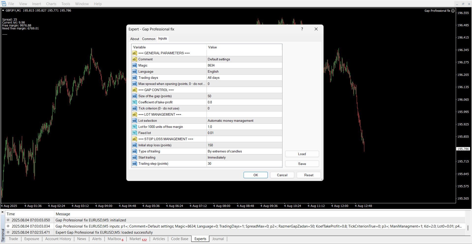 If conditions align, it opens a trade towards the gap’s closure — with individual TP/SL settings, adaptive lot sizing, and built-in protections.