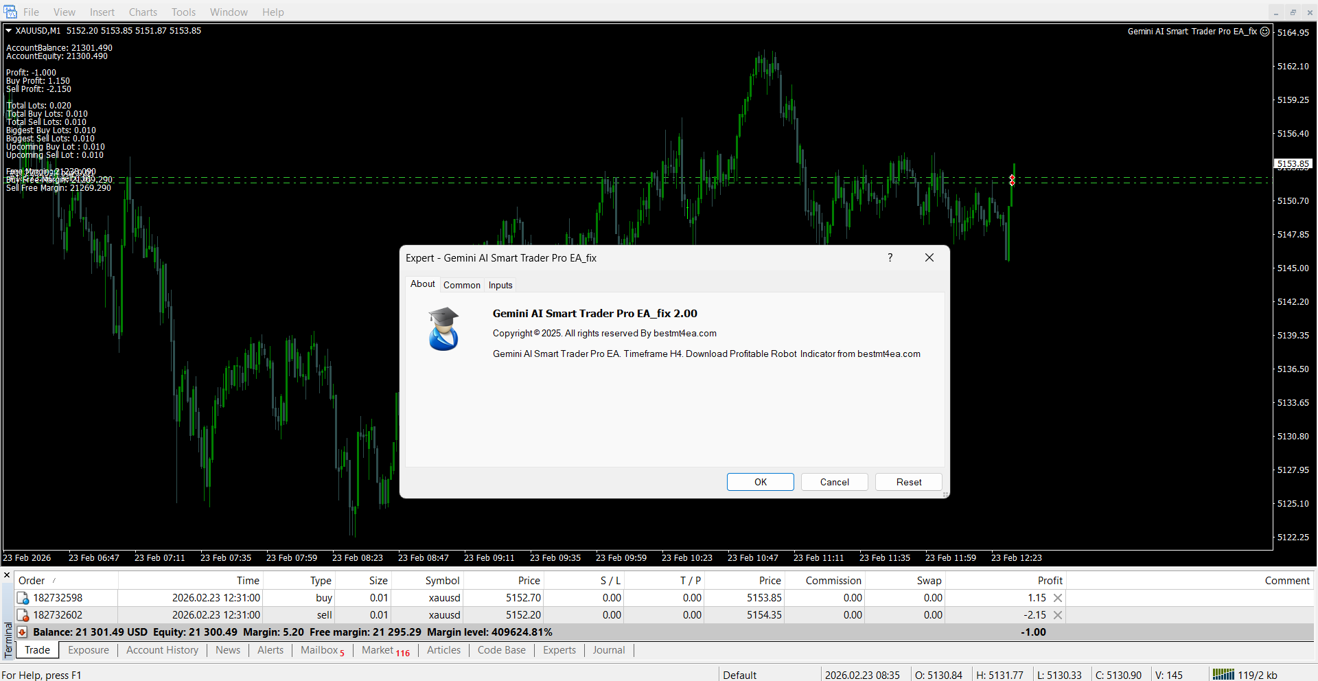 Content: Expert: Gemini AI Smart Trader Pro EA_fix.ex4 (Unlocked-Unlimited), Presets: EURNZD Gemini H4 DD6k Profit 15k.set, GBPCAD Gemini H4 DD6k Profit 14k.set, GBPUSD Gemini H4 DD6k Profit 25k.set, USDCAD Gemini H4 DD5k Profit 18k.set, XAUUSD Gemini H4 DD10k Profit 18k.set, NO MANUAL.