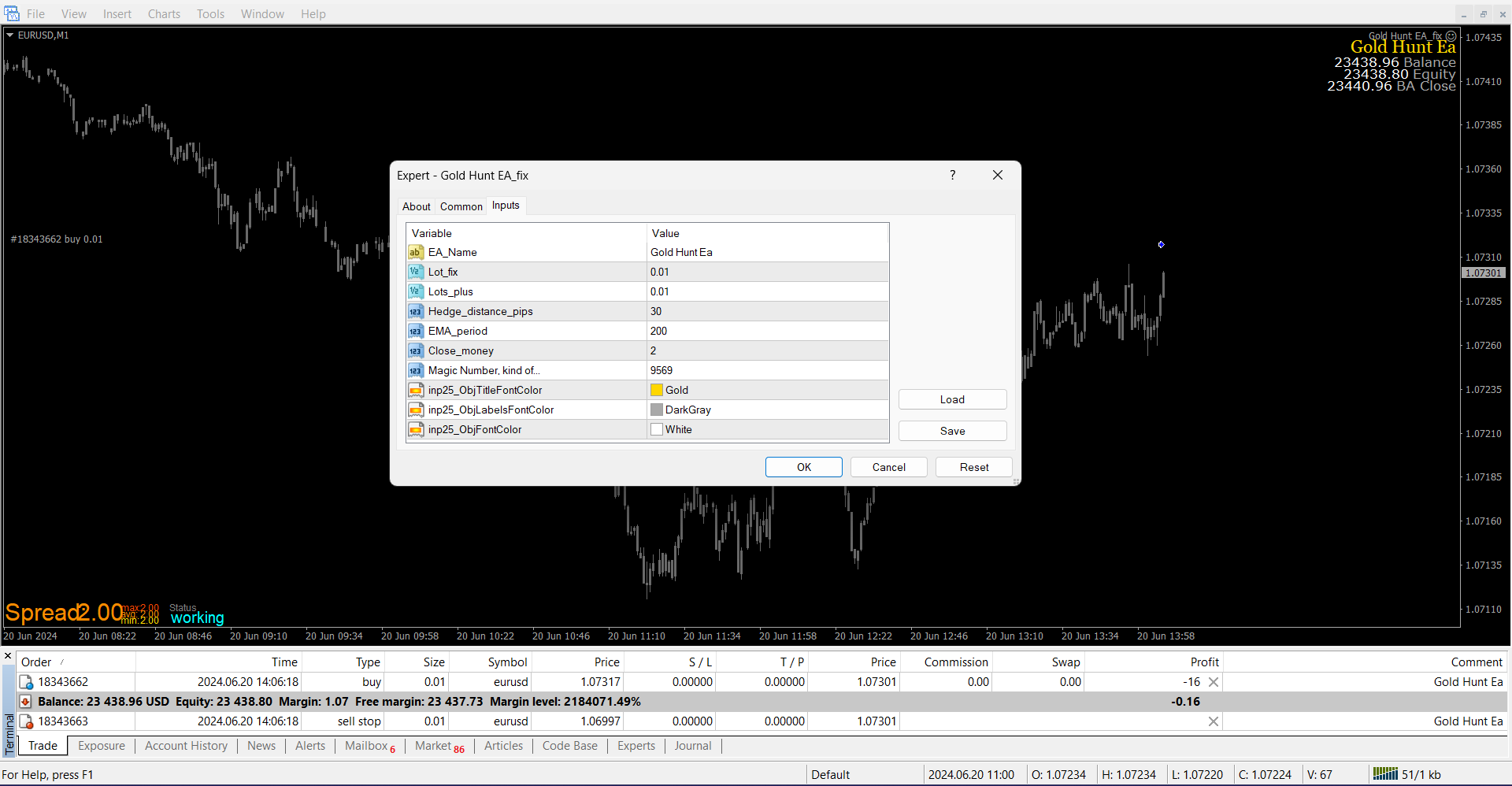 Gold Hunt EA is a sophisticated Hedging Expert Advisor specifically designed for trading XAUUSD (gold). With advanced features and a focus on precision, this EA is crafted to enhance your trading experience while maintaining prudent risk management. Unlike riskier strategies, Gold Hunt EA avoids using the martingale approach, ensuring more controlled and reliable trading.