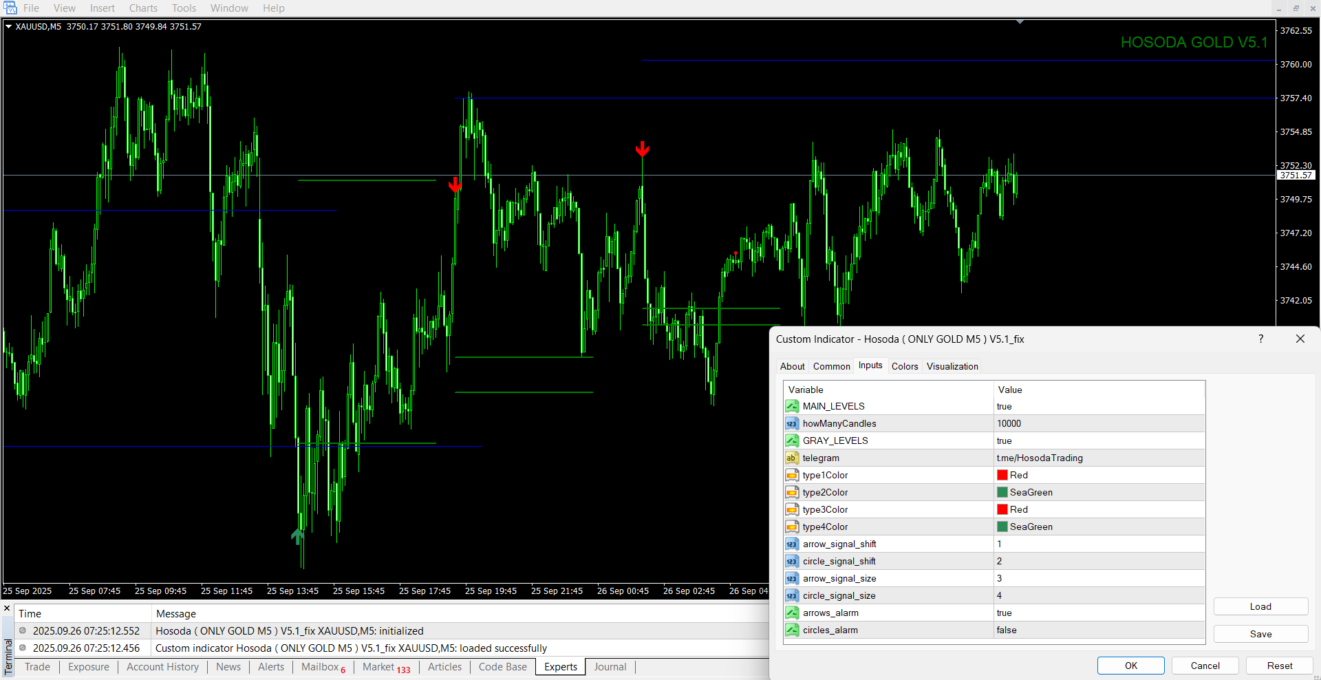 Content: Indicator: Hosoda ( ONLY GOLD M5 ) V5.1_fix.ex4 (Unlocked-Unlimited), Template: Hosoda Gold M5 V5.1.tpl, NO MANUAL.