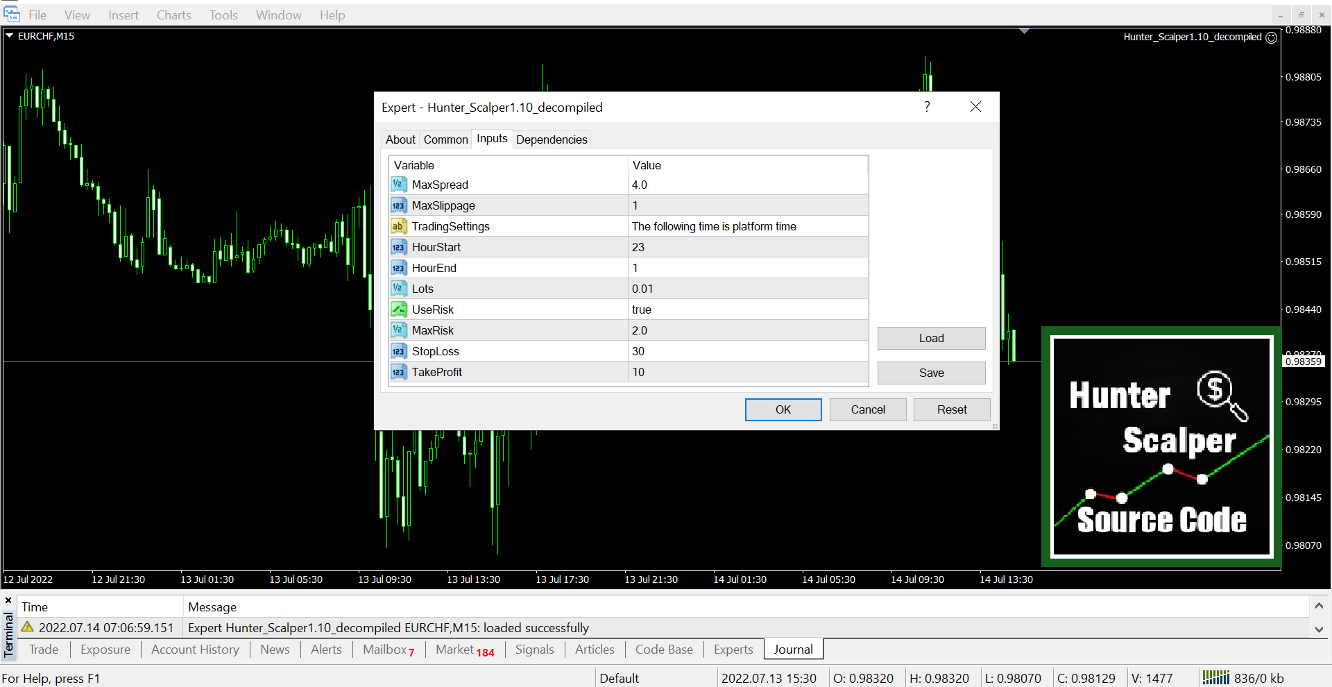 Content: Expert: Hunter_Scalper1.10_decompiled.mq4, Hunter Scalper1.10.ex4 (Unlocked-Source Code), Documnet: HunterScalper.rtf.