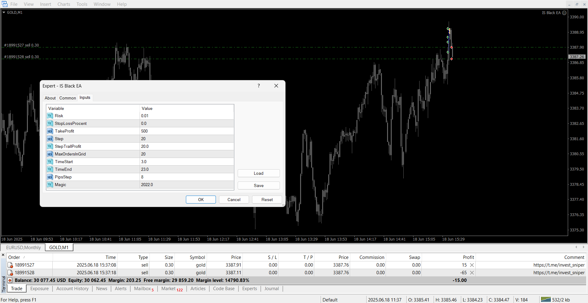 Content: Expert: IS Black EA.ex4 (Unlocked-Unlimited), Preset: IS Black M1 SL0.set, UserGuide: IS Black EA – Info, Video: Video_IS Black EA_XAUUSD M1.mp4.