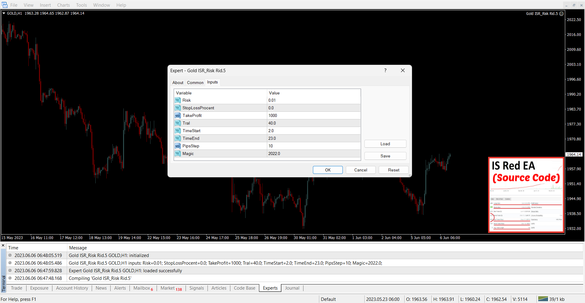 Content: Experts: IS Red EA.mq4, IS RED EA.ex4, IS Red EA – Risk rid.5.mq4, Gold ISR_Risk Rid.5.mq4 (Unlocked-Source Code), Preset: IS RED XauUsd H1.set, Document: IS Red EA.doc.