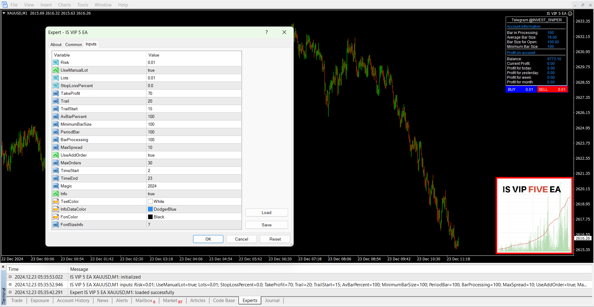 IS VIP Five EA is the latest and most advanced release in the highly successful VIP series of expert advisors, specifically designed for VIP Club members. This scalping EA is built with the most elaborate algorithm to date, ensuring it performs optimally in both demo and live environments.