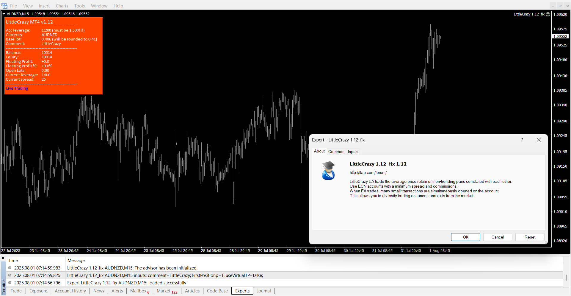 LittleCrazy MT4 is a fully automated Expert Advisor designed to operate on small deposits starting from $200 without requiring any manual intervention or complex setup. Simply load the EA on the specified charts, and it will manage trading autonomously.