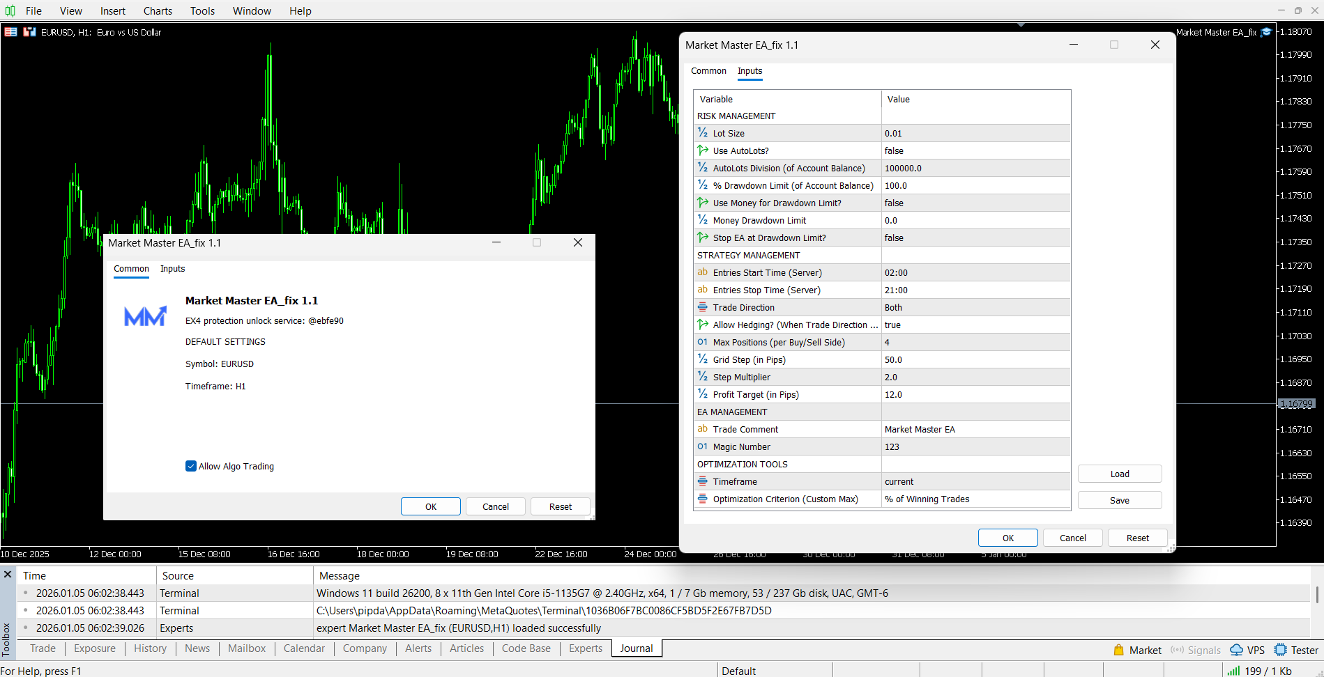 Content: Expert: Market Master EA_fix.ex5 v1.1 (Unlocked-Unlimited), UserGuide: Market Master EA Inputs Guide.pdf.