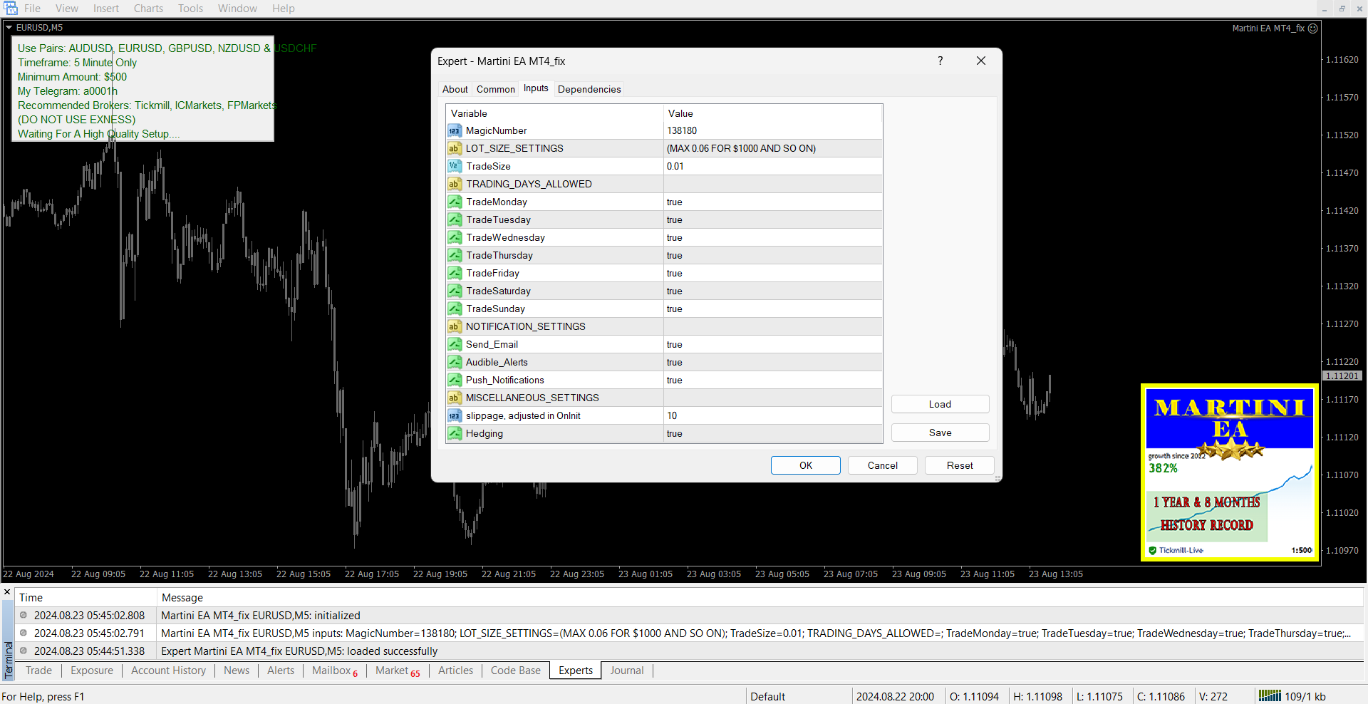 Martini EA is a smart choice for anyone seeking automated, conservative gains in the forex market, especially during the most predictable hours of the trading day.