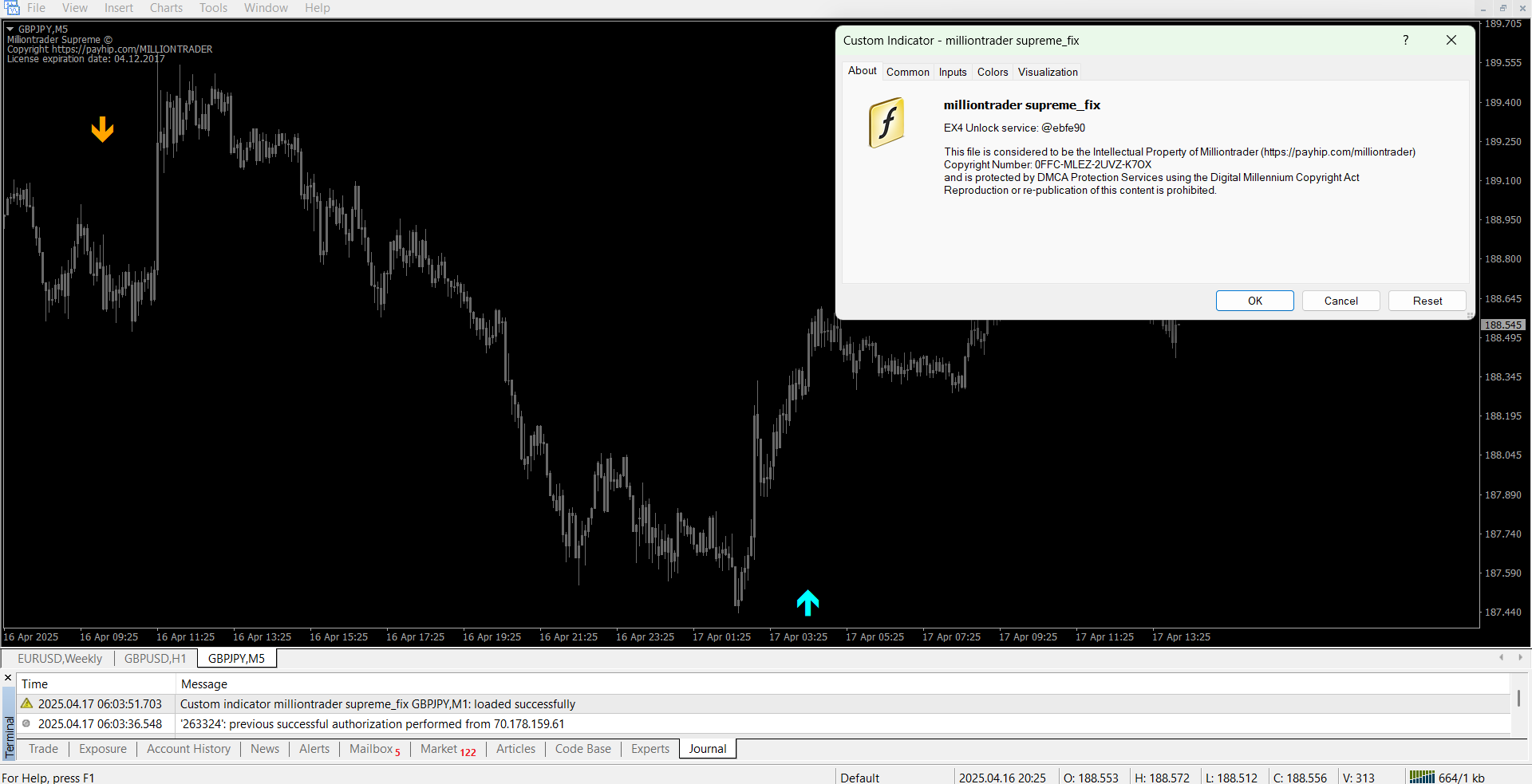 Content: Indicator: milliontrader supreme_fix.ex4 (Unlocked-Unlimited), NO MANUAL.