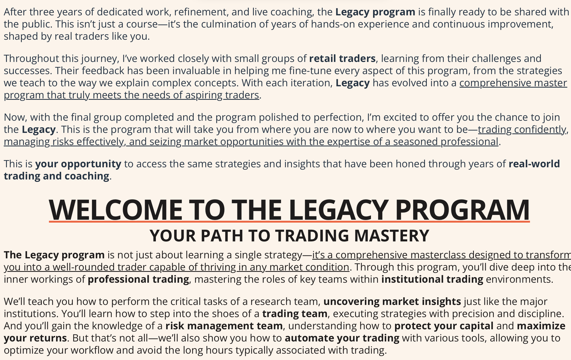 TRANSFORM YOUR TRADING CAREER WITH LEGACY! LEARN HOW TO THINK, ACT, AND SUCCEED AS A PROFESSIONAL TRADER!