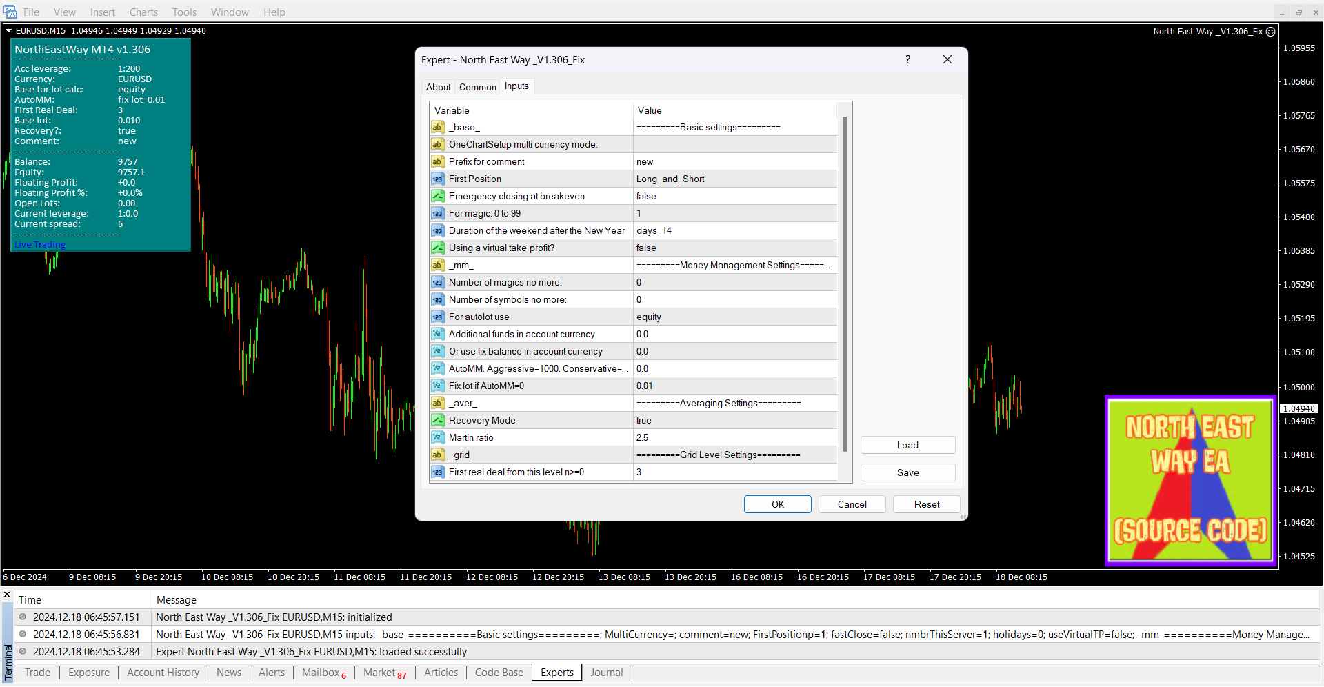 Content: Expert: North East Way1.306_.mq4 (Unlocked-Source Code), NO MANUAL.
