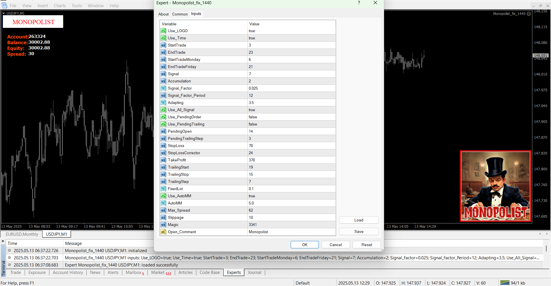 Monopolist is a professional automatic advisor designed for high-performance trading. It comes with preset default settings but also allows you to customize lot sizes—either fixed or automatically calculated—according to your preferences.