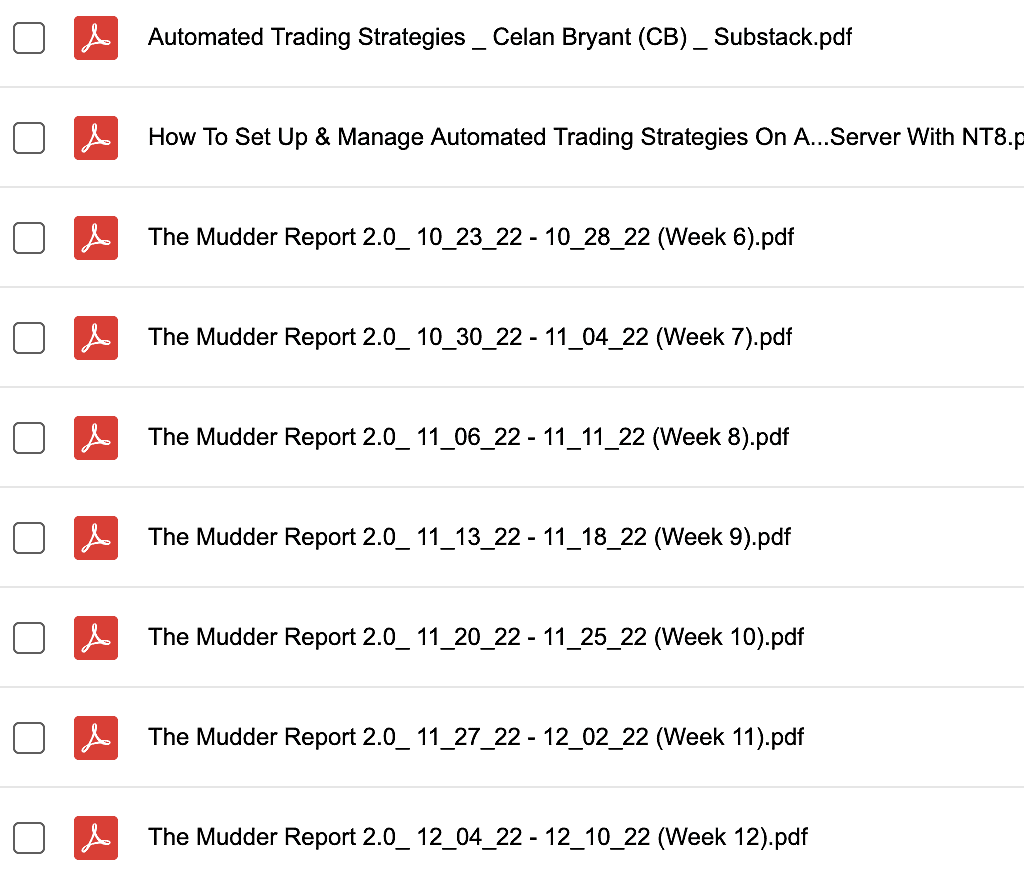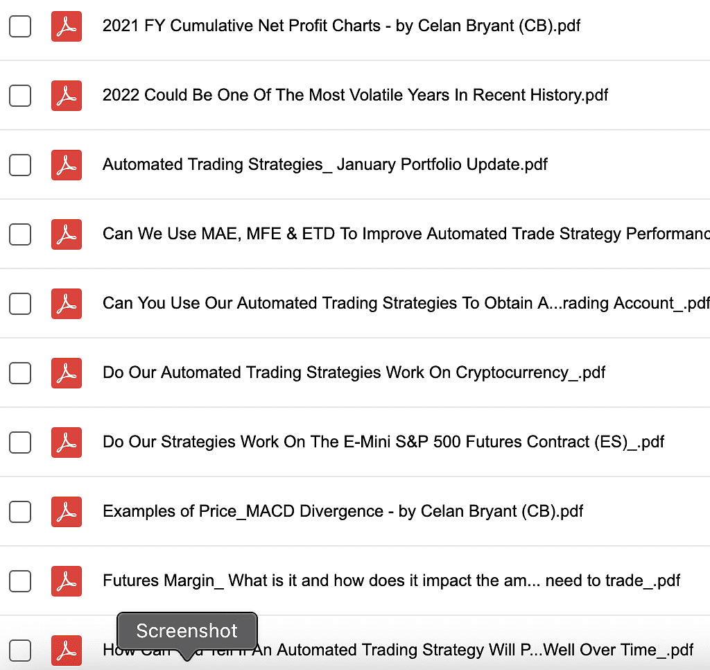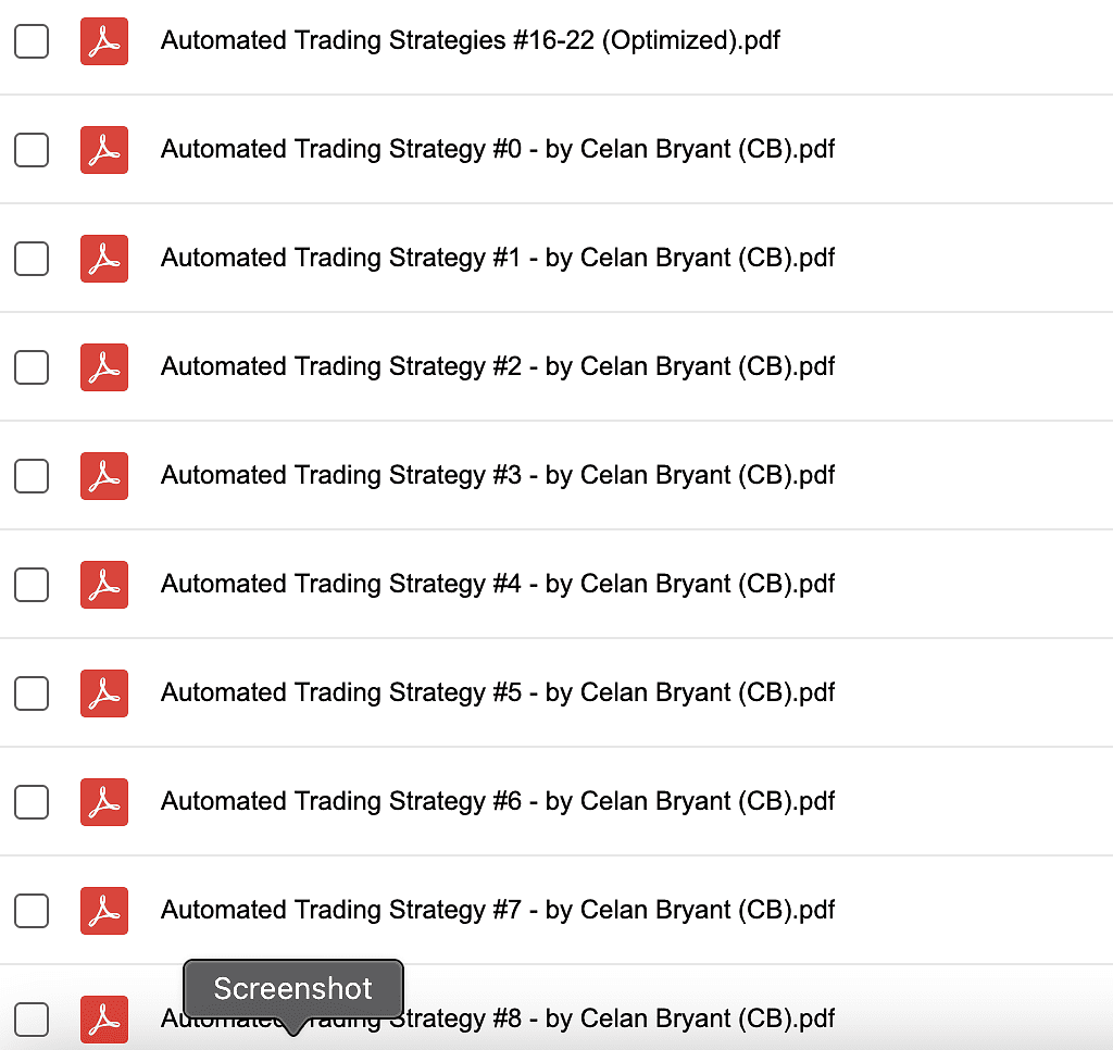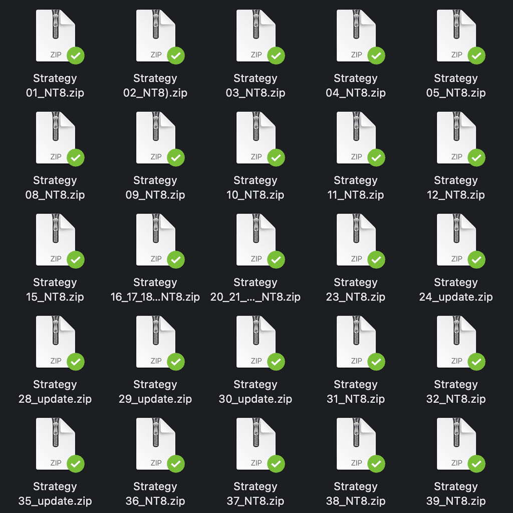 Content: pdfs guides & ALL NinjaTrader8 strategy files as seen below.
