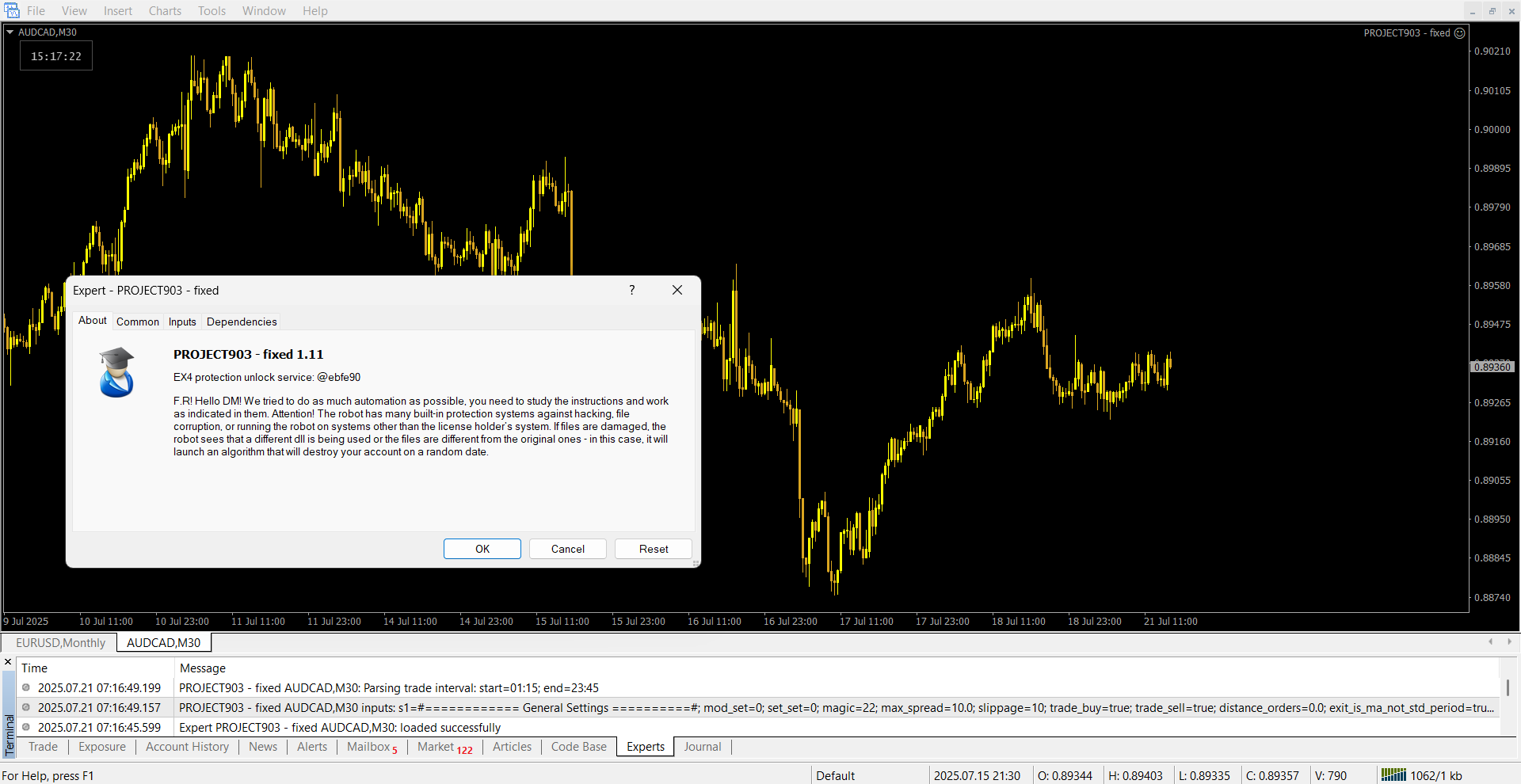 Content: Expert: PROJECT903 – fixed.ex4 V1.11 (Unlocked-Unlimited), Preset: Project903 EA, Libraries: TA.dll, NO MANUAL.