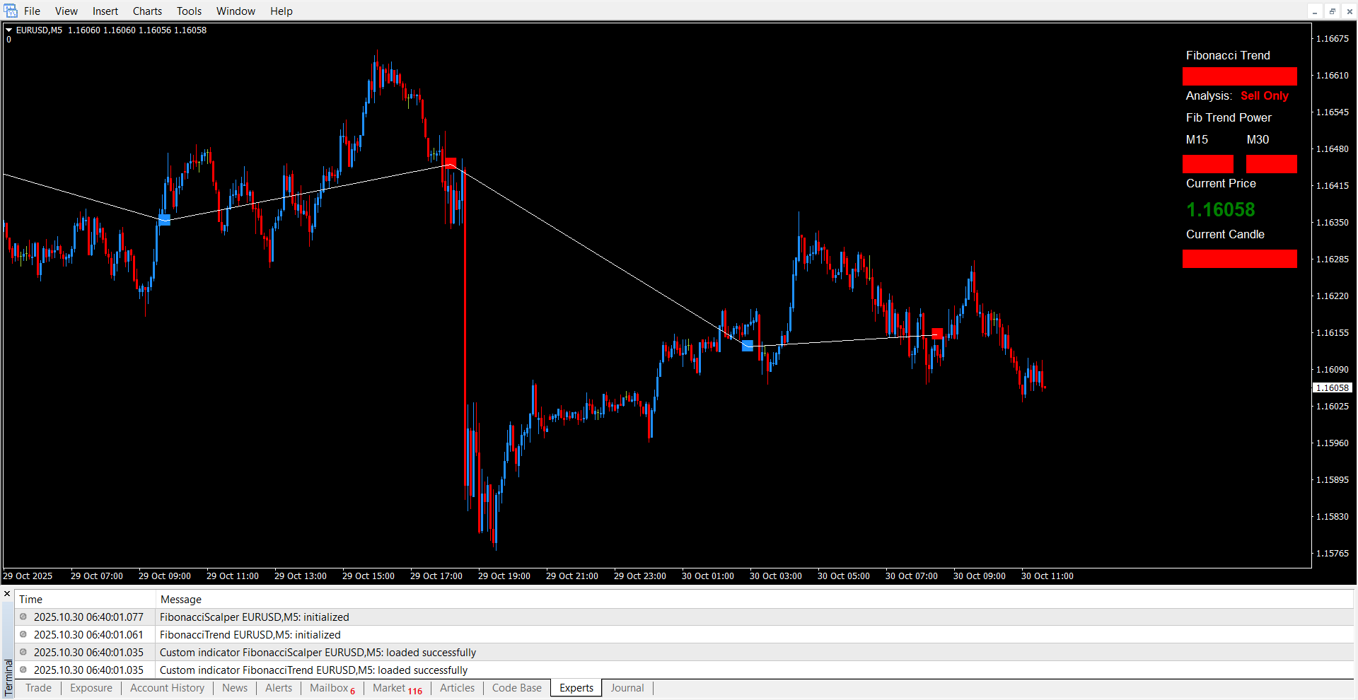 Content: Indicators: FibonacciScalper.ex4, FibonacciTrend.ex4 (Unlocked-Unlimited), Template: FibonacciScalper.tpl, UserGuide: Fibonacci Forex Scalper System.pdf.