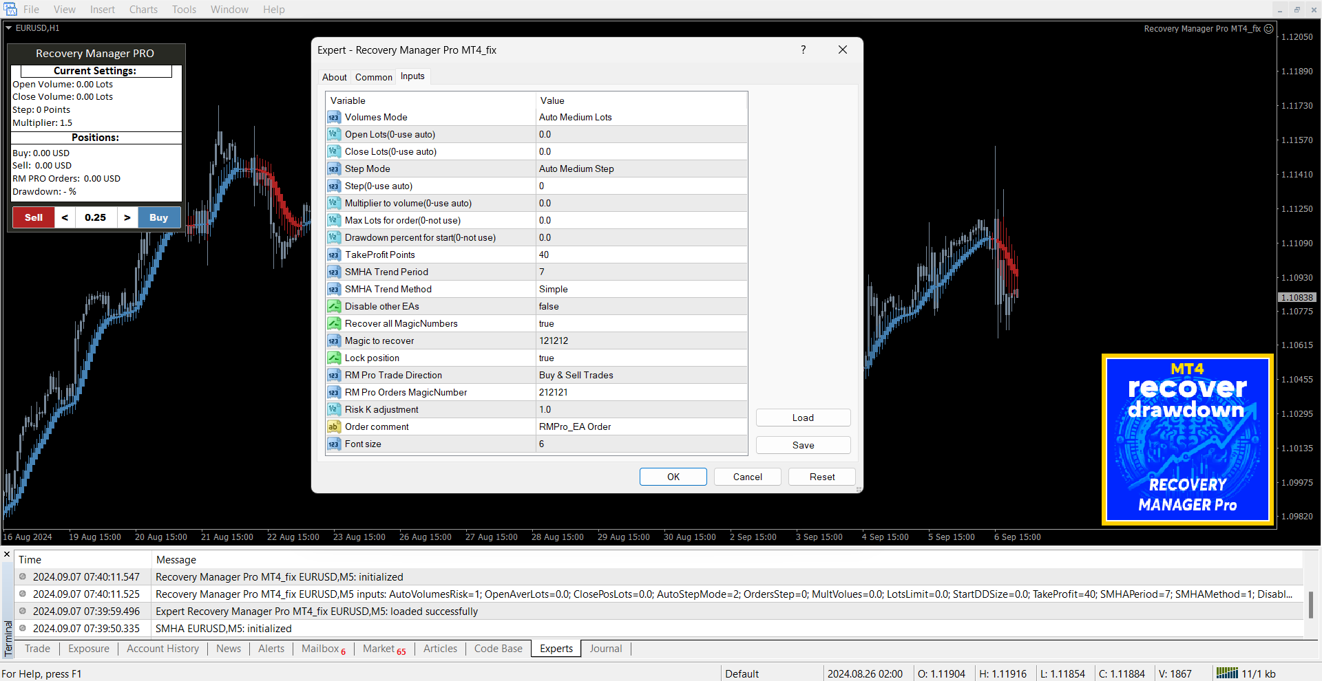 RM Pro is a powerful trading tool designed to recover drawdowns caused by other EAs or manual orders. Whether you’re battling one bad trade or a series of losing positions, RM Pro steps in, takes control, and starts working to restore your equity using intelligent trade management strategies.