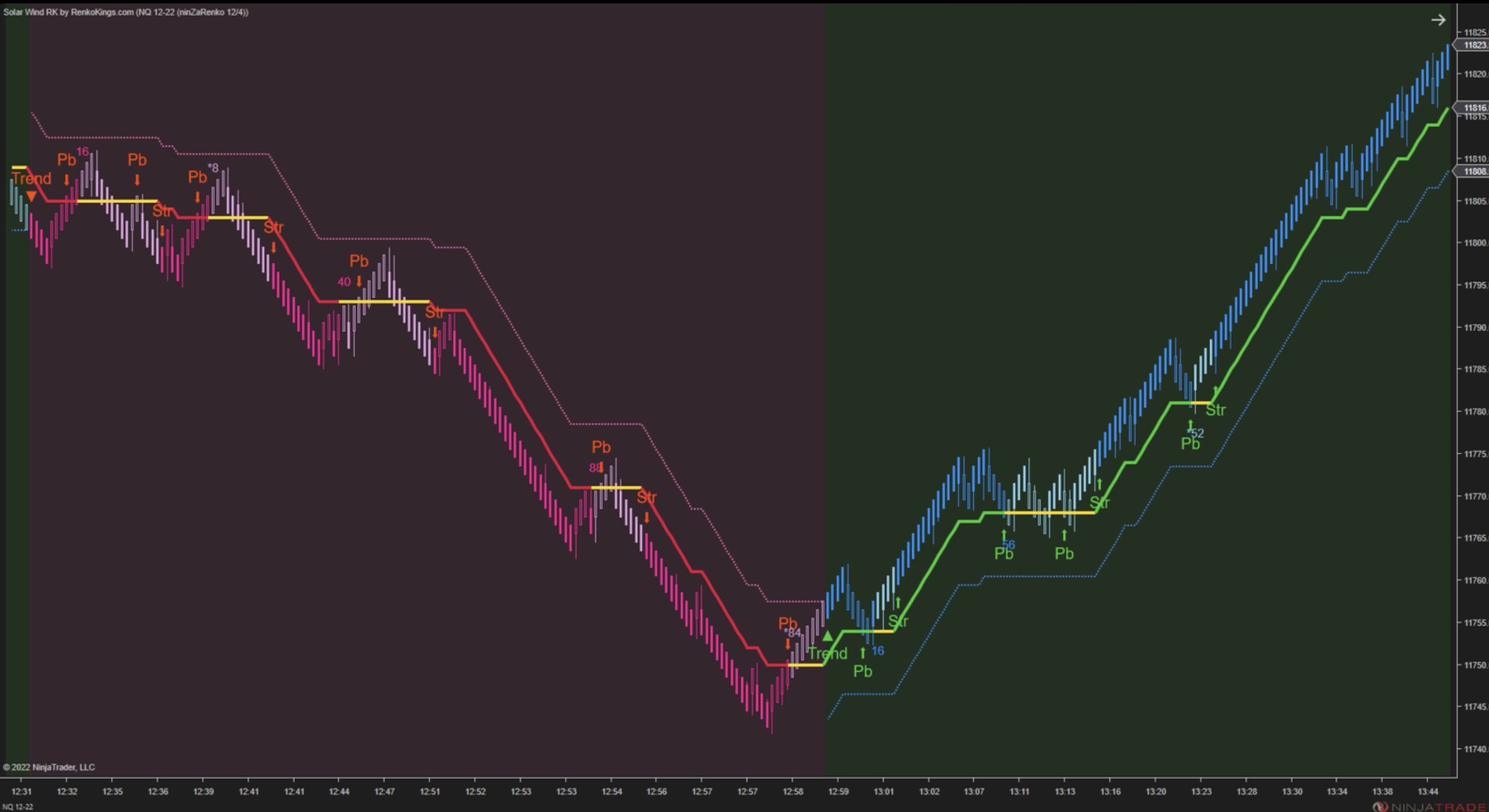 Tick-Based Offset: Replaces ninZaATR with Tick as the unit of measurement, ensuring seamless alignment with the stair-step structure of renko bars.