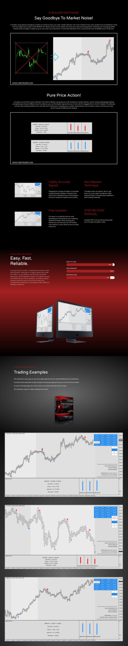 S-SCALPER uses Advanced Price Action modules that allows for picking the trades in line with the market. The software is usable on any trading instrument. Adjust your favorite trading pairs and start trading today!