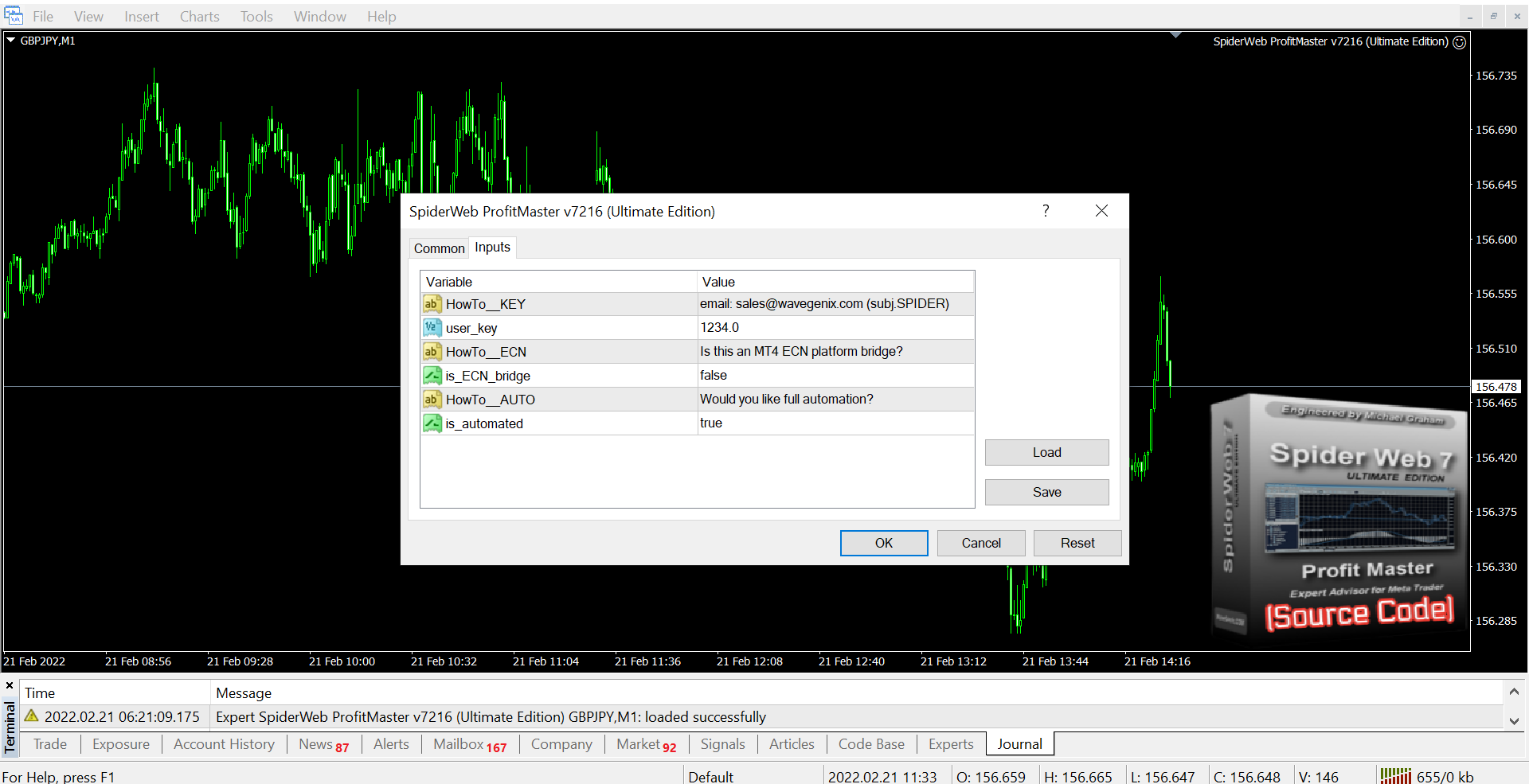 Content: Expert: SpiderWeb ProfitMaster v7216 (Ultimate Edition).mq4 (Unlocked-Source Code), UserGuide: readme.pdf.