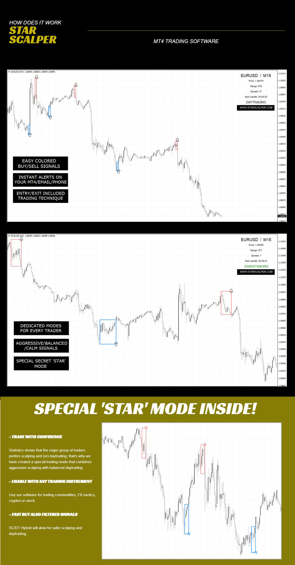 Content: Indicators: 8, Templates: StarScalper – STAR MODE.tpl, StarScalper – SCALPING MODE.tpl, StarScalper – DAYTRADING MODE.tpl, StarScalper – SWINGTRADING MODE.tpl, NO MANUAL.