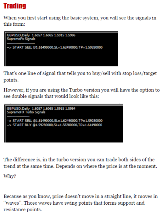 Content: Indicators: SupremoFx-Turbo.mq4, AdaptiveEMA.mq4 (Unlocked-Source Code), UserGuide: SupremoFX-TradingGuide.pdf.