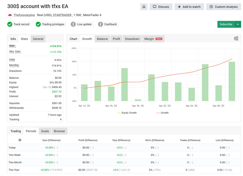Review 1: https://www.myfxbook.com/members/Theforexskyline/300-account-tfxs-ea/11480559