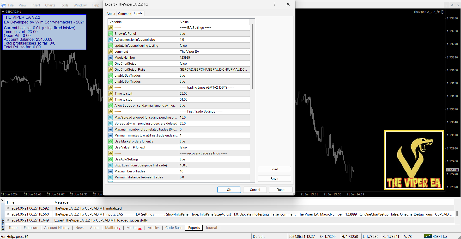 Viper EA is a powerful Expert Advisor built for mean reversion trading during the low-volatility period between 23:00 and 01:00 GMT+2 (US DST). It opens high-probability trades and includes a trademark recovery mode that turns losing entries into profitable outcomes.