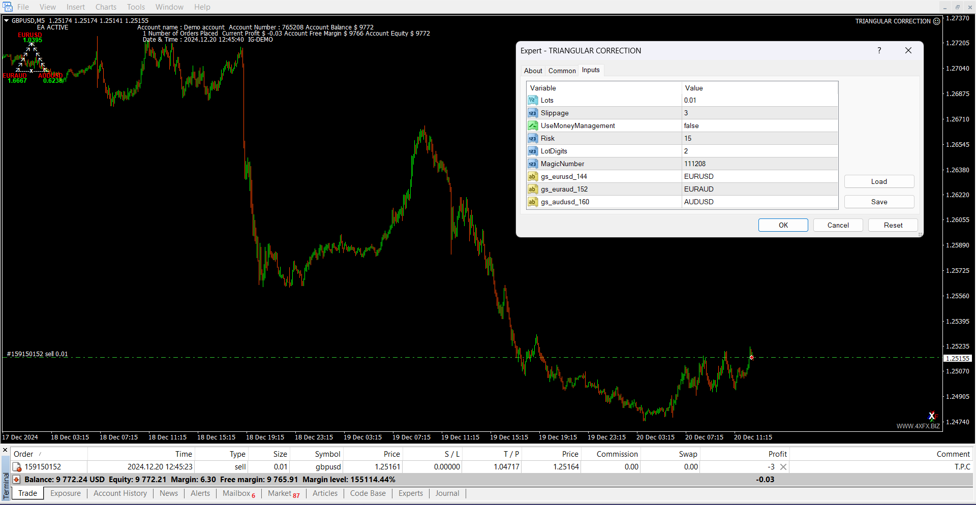 I’ve attached the EA to both the EU & EG pairs and also tested it on a single pair (EURUSD). There’s no expiry for the EA, and I’ve simply used the default settings.