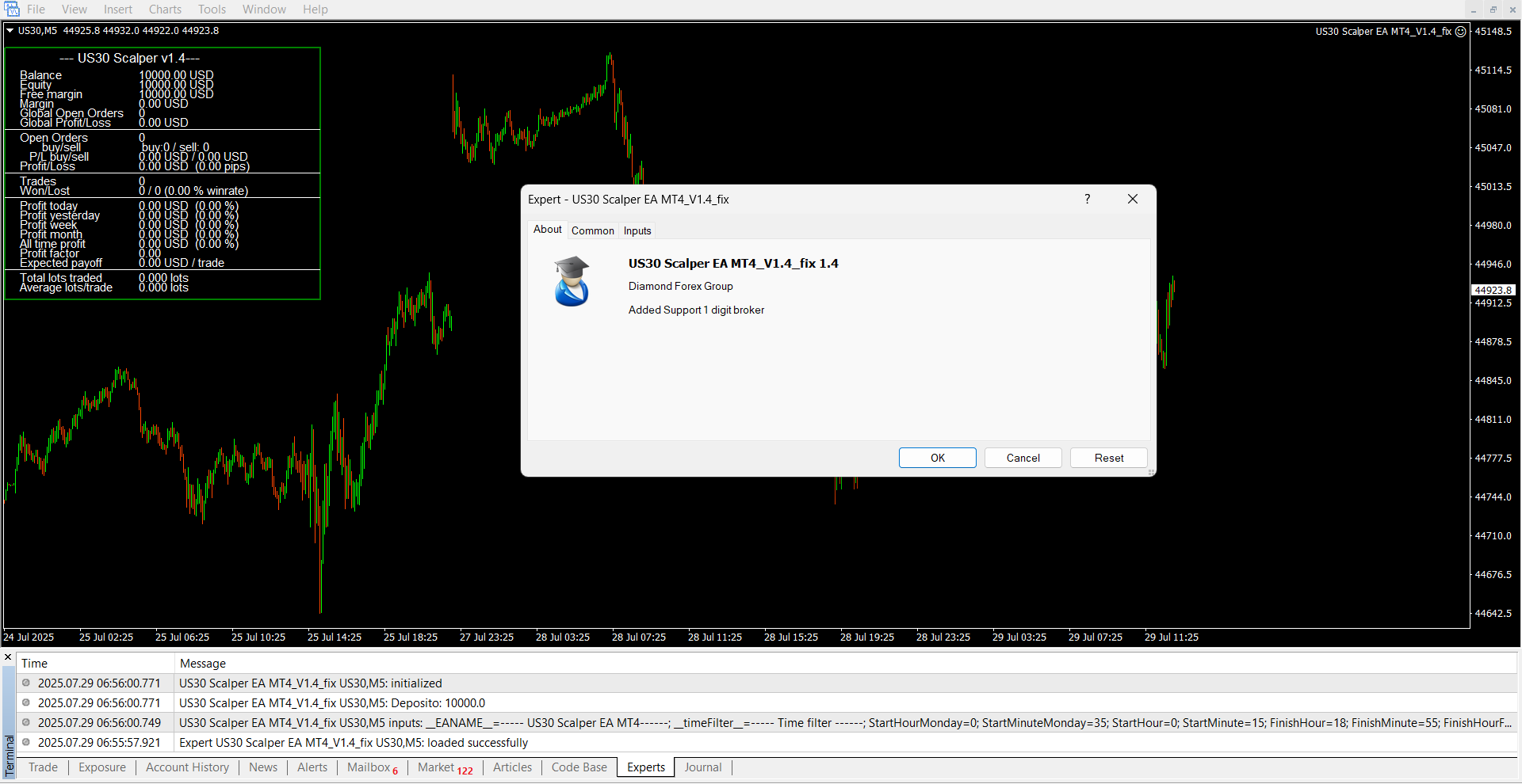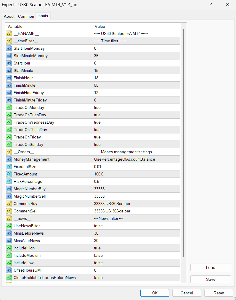 Content: Expert: US30 Scalper EA MT4_V1.4_fix.ex4 (Unlocked-Unlimited), Presets: 6, UserGuide.