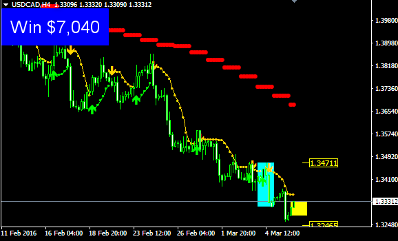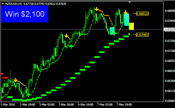 You can either take profit or set a trailing stop when a Down arrow appears during a Buy trade or an Up arrow appears during a Sell trade