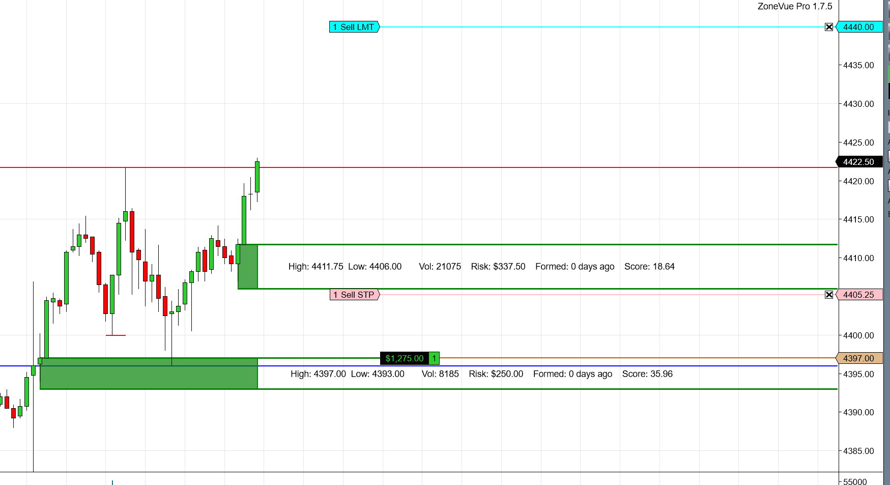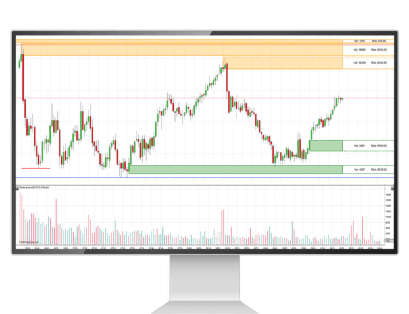 Detailed Zone Labels: Display volume, risk amount, and formation date.